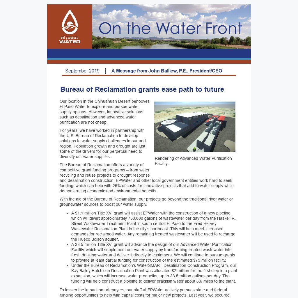 EPWater values our partnership with the Bureau of Reclamation. Only through multiple partnerships will we gain momentum on our path to a sustainable water future.