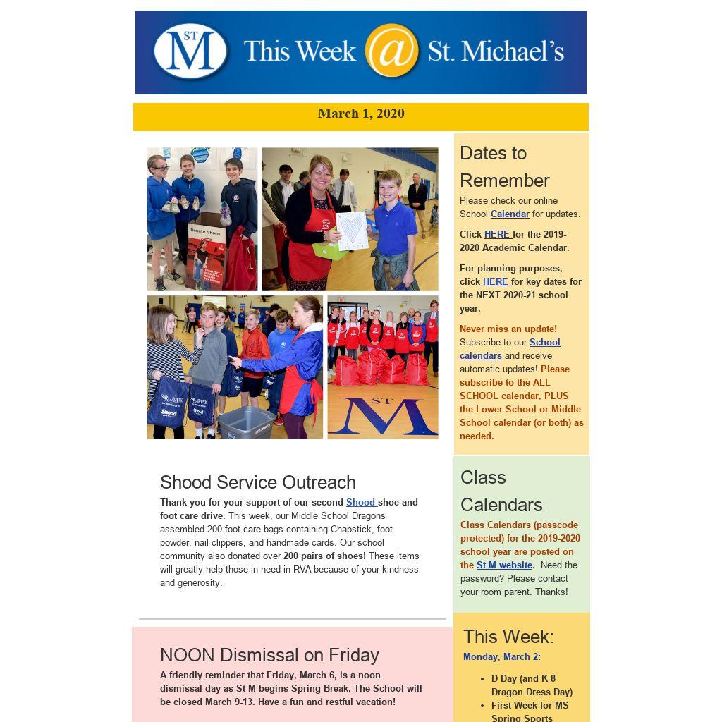 Current and past issues of "This Week at St. Michael's" are now archived on our website under " News and Events," as well as under " Community."