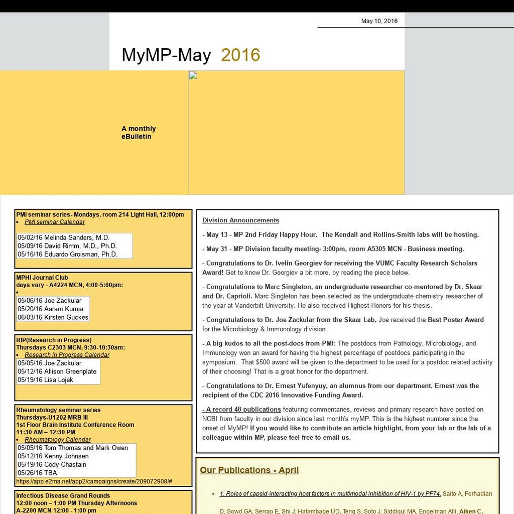 - A record 48 publications featuring commentaries, reviews and primary research have posted on NCBI from faculty in our division since last month's myMP. This is the highest numbrer since the onset of MyMP!If you would like to contribute an article highlight, from your lab or the lab of a colleague within MP, please feel free to email us.