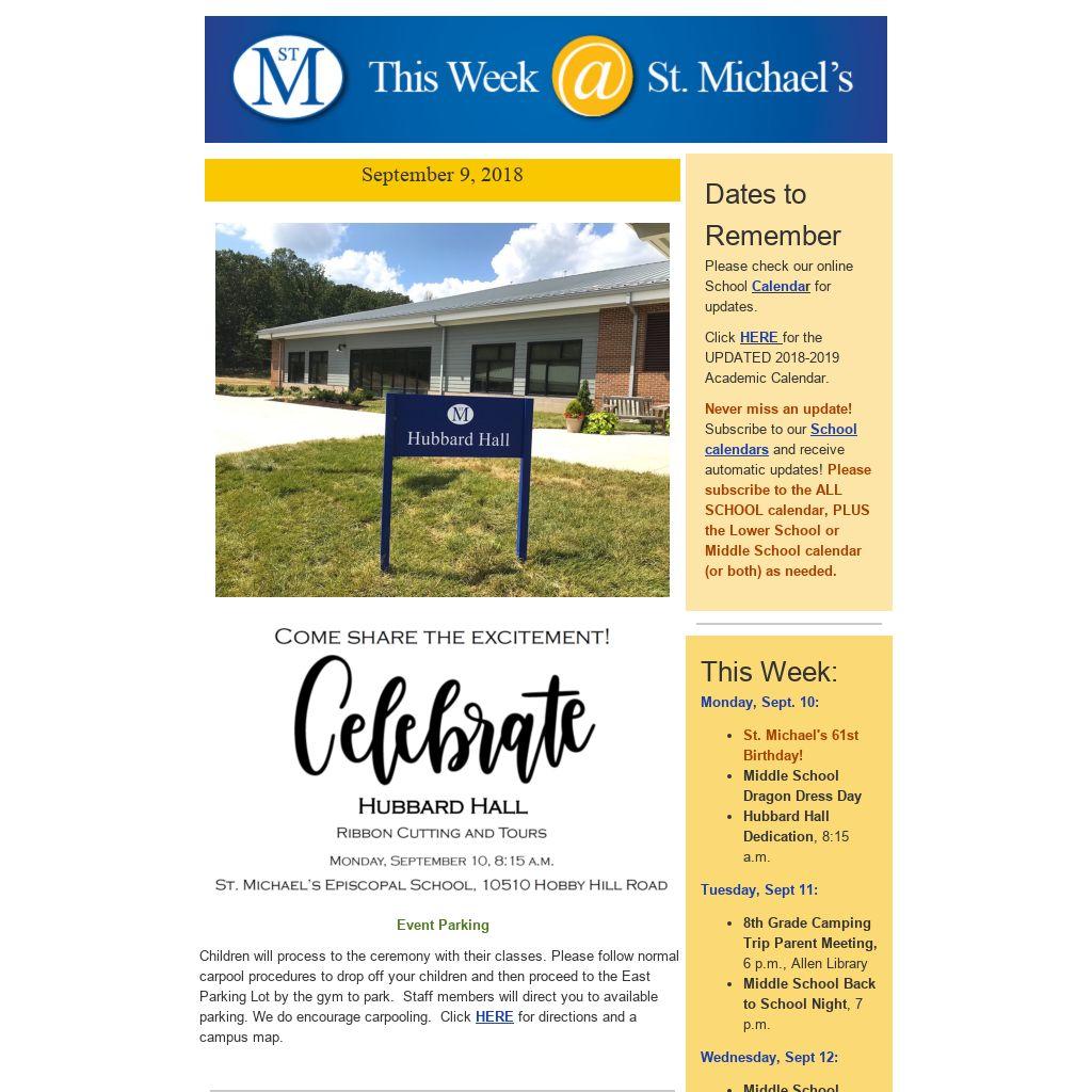 Current and past issues of "This Week at St. Michael's" are now archived on our website under " News and Events," as well as under " Community."