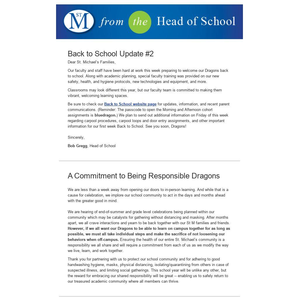 bluedragon.) We plan to send out additional information on Friday of this week regarding carpool procedures, carpool loops and door entry assignments, and other important information for our first week Back to School. See you soon, Dragons!
