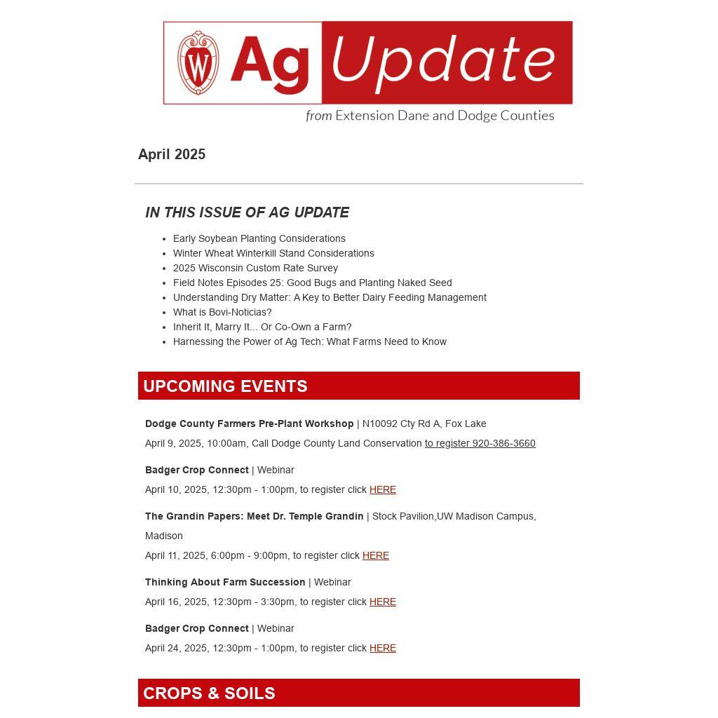 Badger Crop Connect | Webinar April 10, 2025, 12:30pm - 1:00pm, to register click HERE