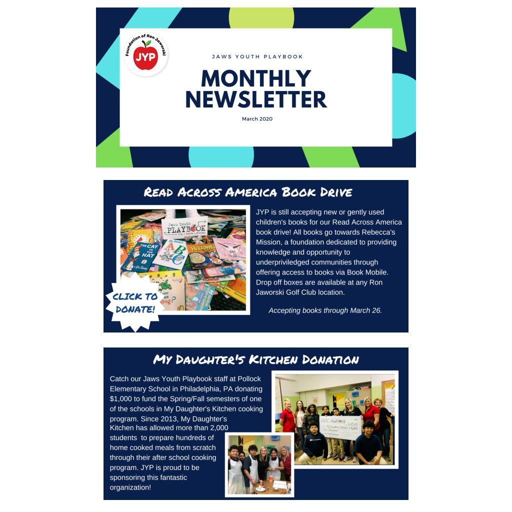 JYP springs into March with a Book Drive, Celebrity Golf, & donations!