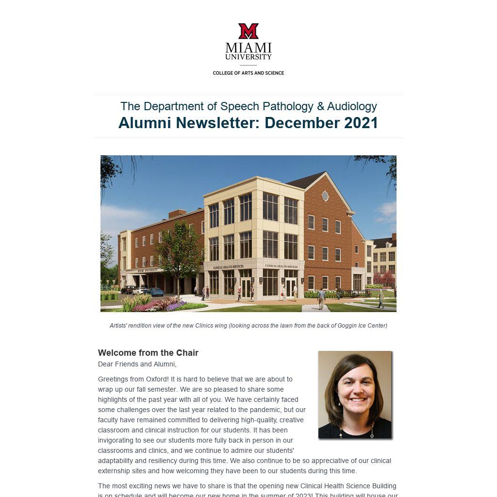 Greetings from Oxford! It is hard to believe that we are about to wrap up our fall semester. We are so pleased to share some highlights of the past year with all of you. We have certainly faced some challenges over the last year related to the pandemic, but our faculty have remained committed to delivering high-quality, creative classroom and clinical instruction for our students. It has been invigorating to see our students more fully back in person in our classrooms and clinics, and we continue to admire our students' adaptability and resiliency during this time. We also continue to be so appreciative of our clinical externship sites and how welcoming they have been to our students during this time.
