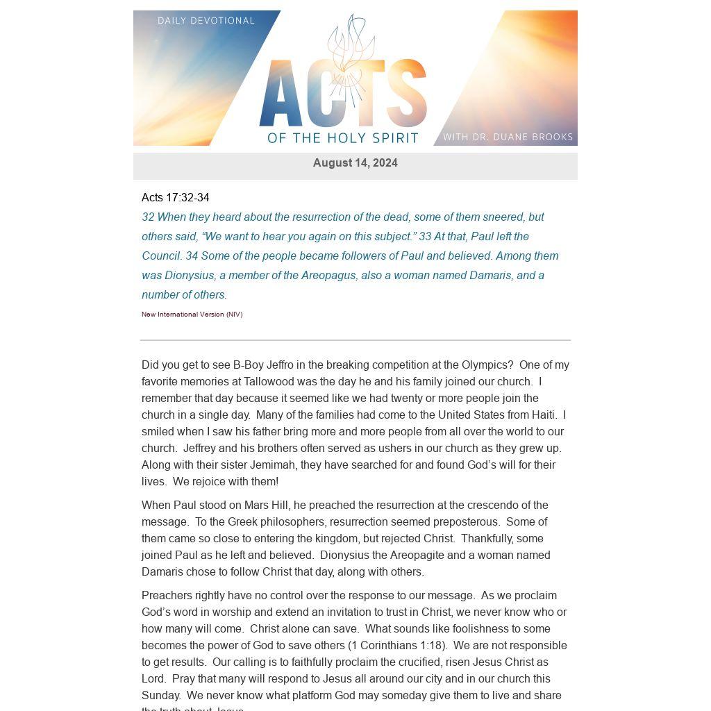 When Paul stood on Mars Hill, he preached the resurrection at the crescendo of the message. To the Greek philosophers, resurrection seemed preposterous. Some of them came so close to entering the kingdom, but rejected Christ. Thankfully, some joined Paul as he left and believed. Dionysius the Areopagite and a woman named Damaris chose to follow Christ that day, along with others.