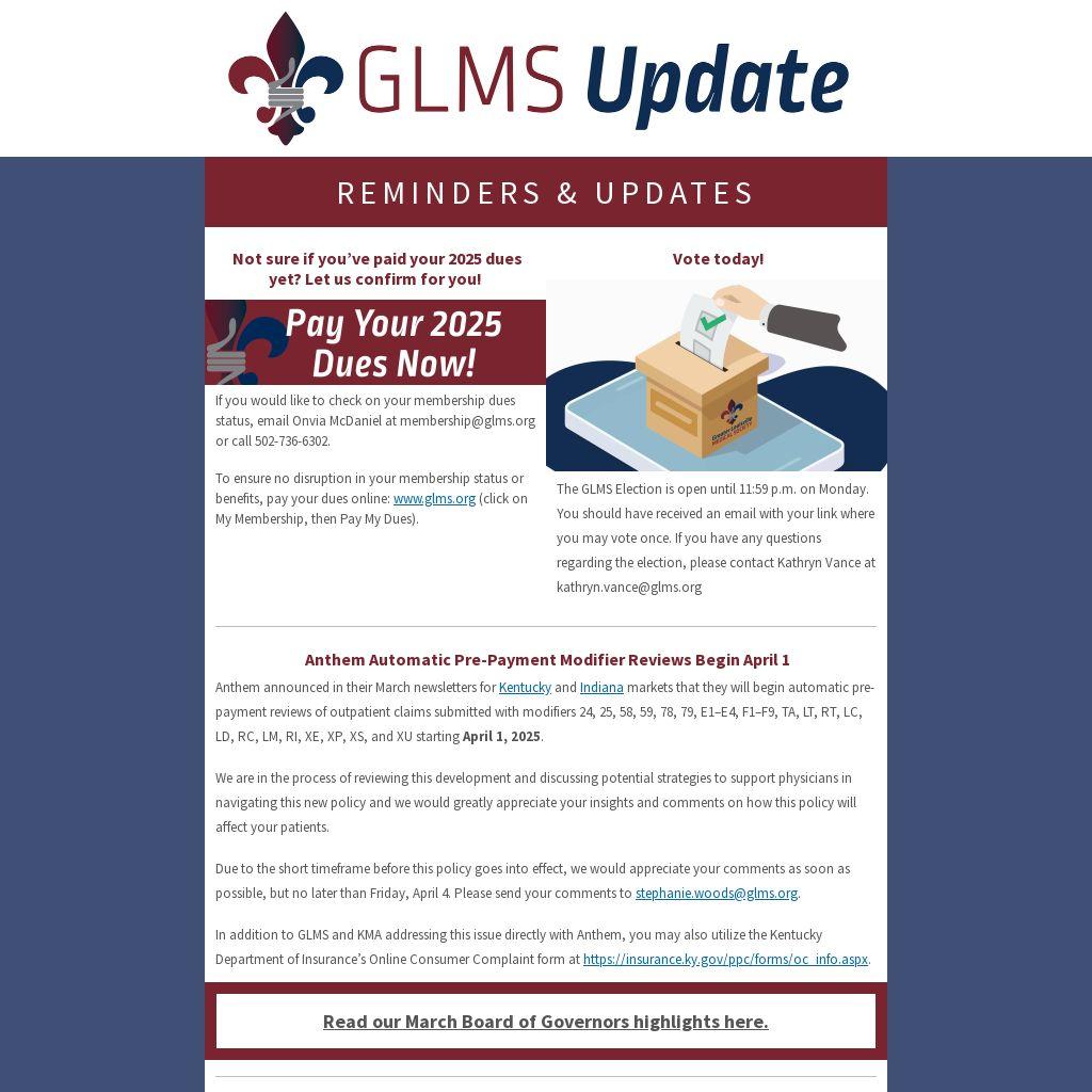 In addition to GLMS and KMA addressing this issue directly with Anthem, you may also utilize the Kentucky Department of Insurance’s Online Consumer Complaint form at https://insurance.ky.gov/ppc/forms/oc_info.aspx.