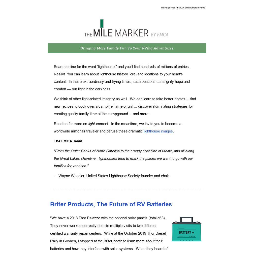 | Plans change. Briter's commitment won't. Over the years, FMCA members' support has allowed Briter to continue to offer the very best in power products to enhance the RVing experience.