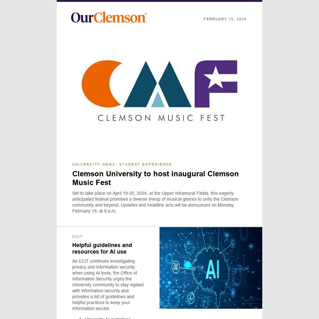 Set to take place on April 19-20, 2024, at the Upper Intramural Fields, this eagerly anticipated festival promises a diverse lineup of musical genres to unify the Clemson community and beyond. Updates and headline acts will be announced on Monday, February 19, at 9 a.m.