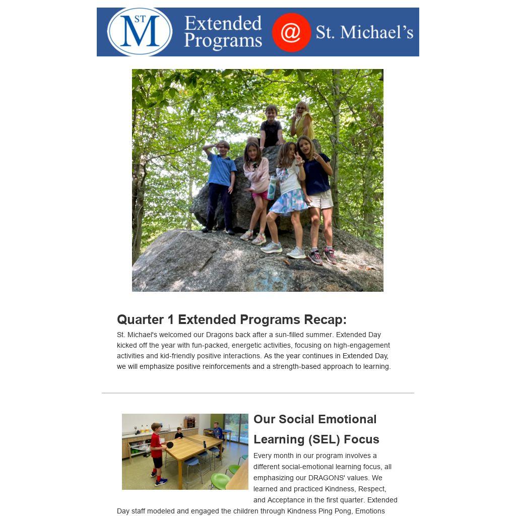 St. Michael's welcomed our Dragons back after a sun-filled summer. Extended Day kicked off the year with fun-packed, energetic activities, focusing on high-engagement activities and kid-friendly positive interactions. As the year continues in Extended Day, we will emphasize positive reinforcements and a strength-based approach to learning.