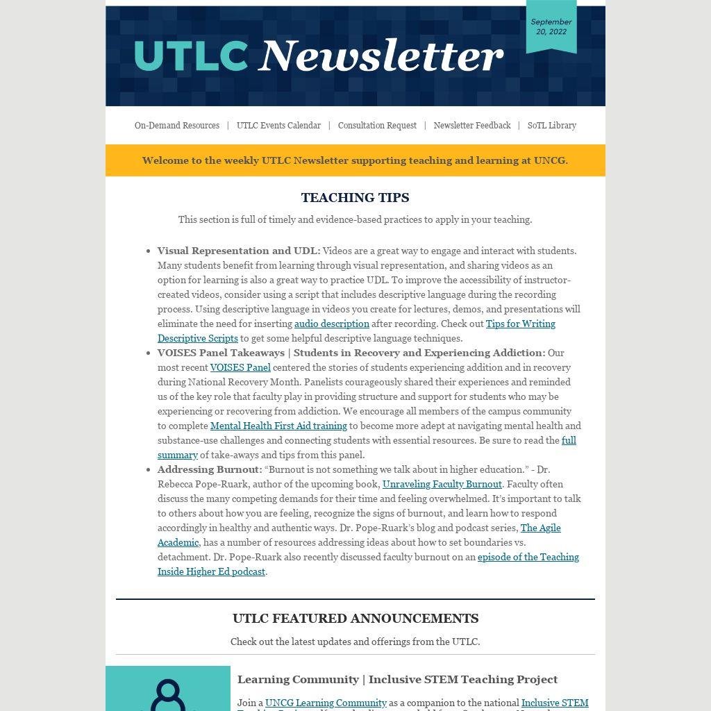 Welcome to the weekly UTLC Newsletter supporting teaching and learning at UNCG.