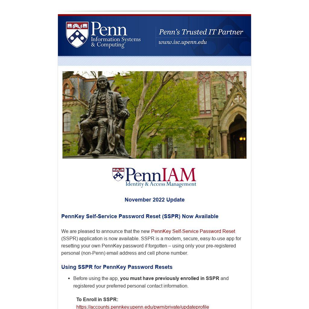 ISC values your feedback. If you have questions, comments, or suggestions, please contact penn-iam@upenn.edu.