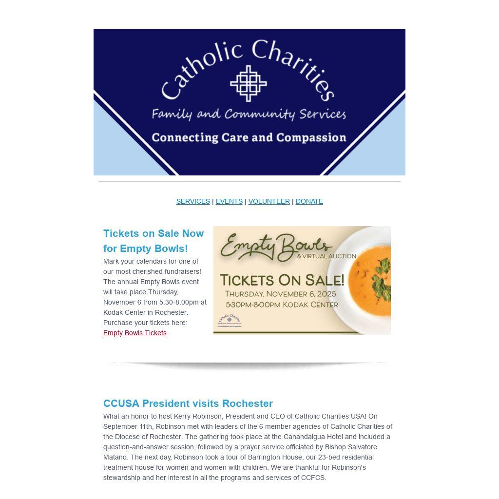 Mark your calendars for one of our most cherished fundraisers! The annual Empty Bowls event will take place Thursday, November 6 from 5:30-8:00pm at Kodak Center in Rochester. Purchase your tickets here: Empty Bowls Tickets