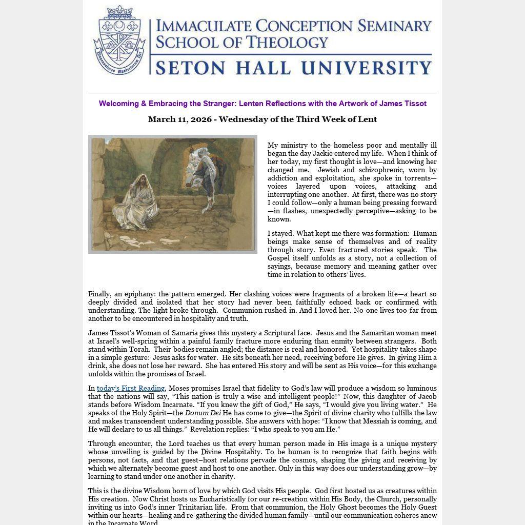 In today’s First Reading, Moses promises Israel that fidelity to God’s law will produce a wisdom so luminous that the nations will say, “This nation is truly a wise and intelligent people!” Now, this daughter of Jacob stands before Wisdom Incarnate. “If you knew the gift of God,” He says, “I would give you living water.” He speaks of the Holy Spirit—the Donum Dei He has come to give—the Spirit of divine charity who fulfills the law and makes transcendent understanding possible. She answers with hope: “I know that Messiah is coming, and He will declare to us all things.” Revelation replies: “I who speak to you am He.”