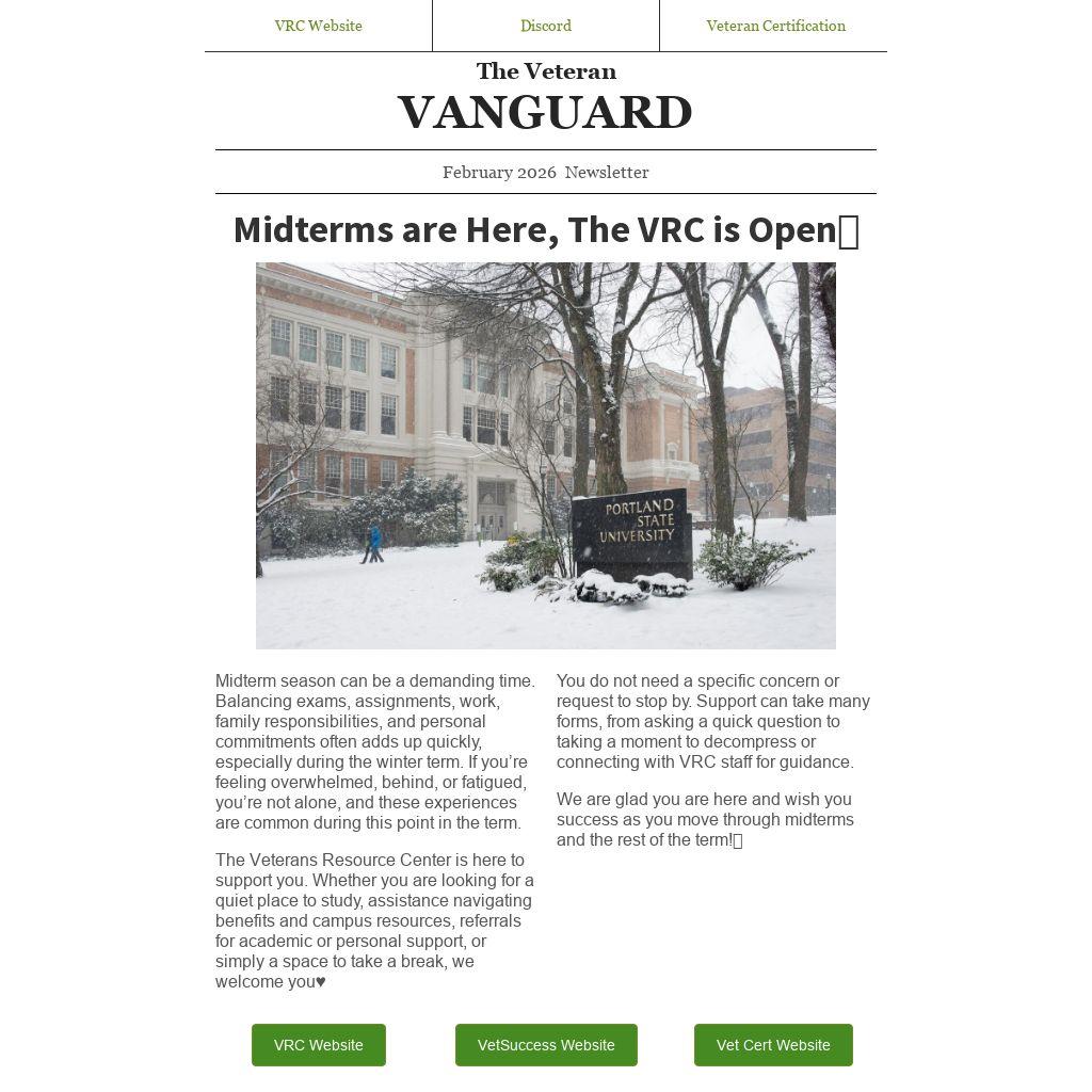 The Veterans Resource Center is here to support you. Whether you are looking for a quiet place to study, assistance navigating benefits and campus resources, referrals for academic or personal support, or simply a space to take a break, we welcome you♥️
