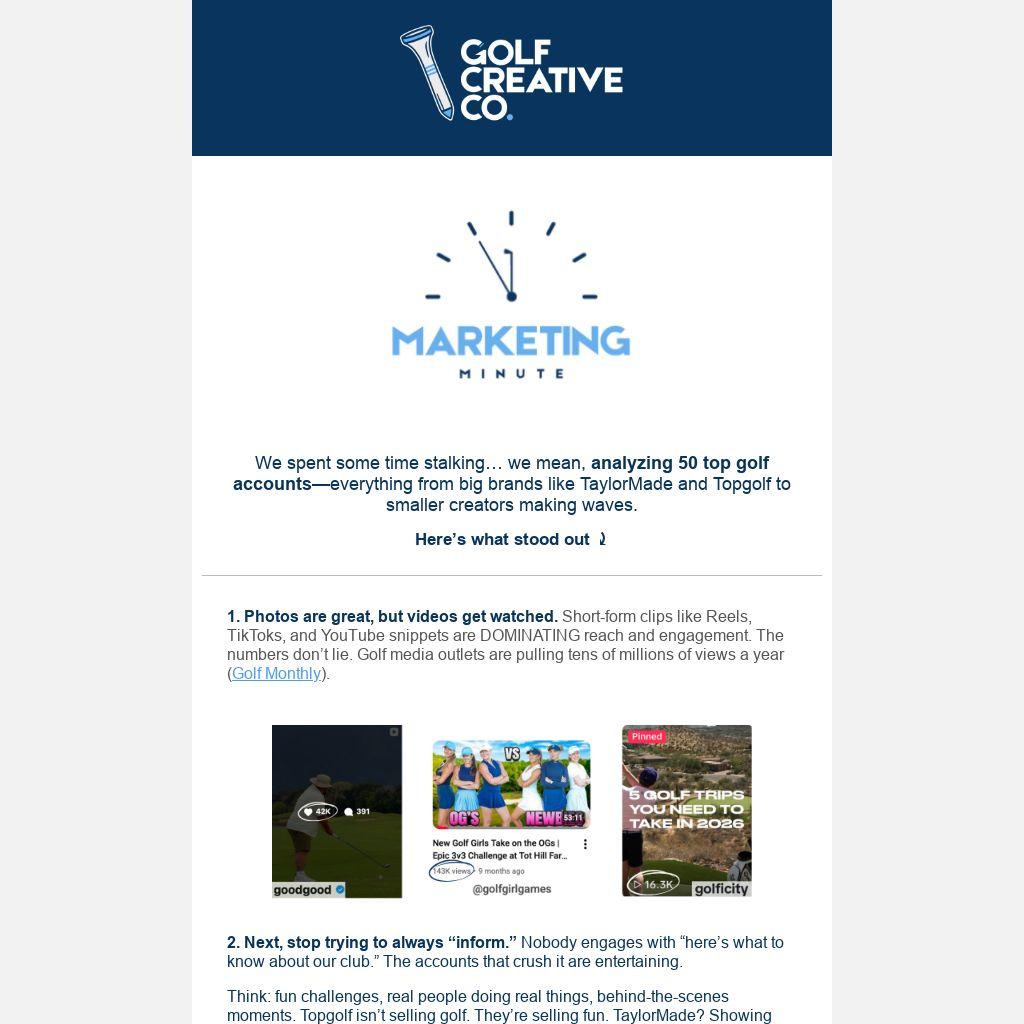 Because it doesn’t feel like posting. It feels like something happening. That’s the shift. Most golf businesses post to stay visible. The best ones post things worth stopping for.