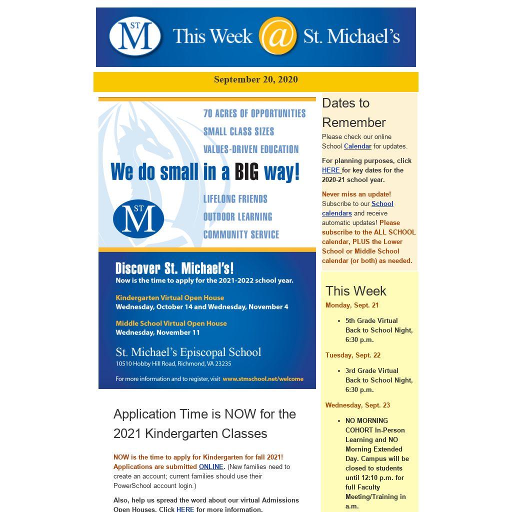 Current and past issues of "This Week at St. Michael's" are now archived on our website under "News and Events," as well as under "Community."