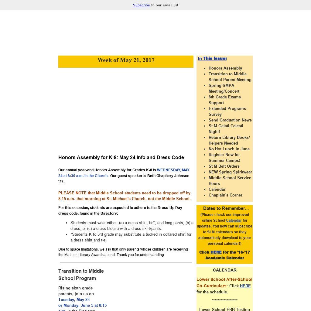 | Dates to Remember...(Please check our improved online School Calendar for updates. You now can subscribe to St M calendars so they automaticaly download to your personal calendar!) Click HERE for the '16-'17 Academic Calendar