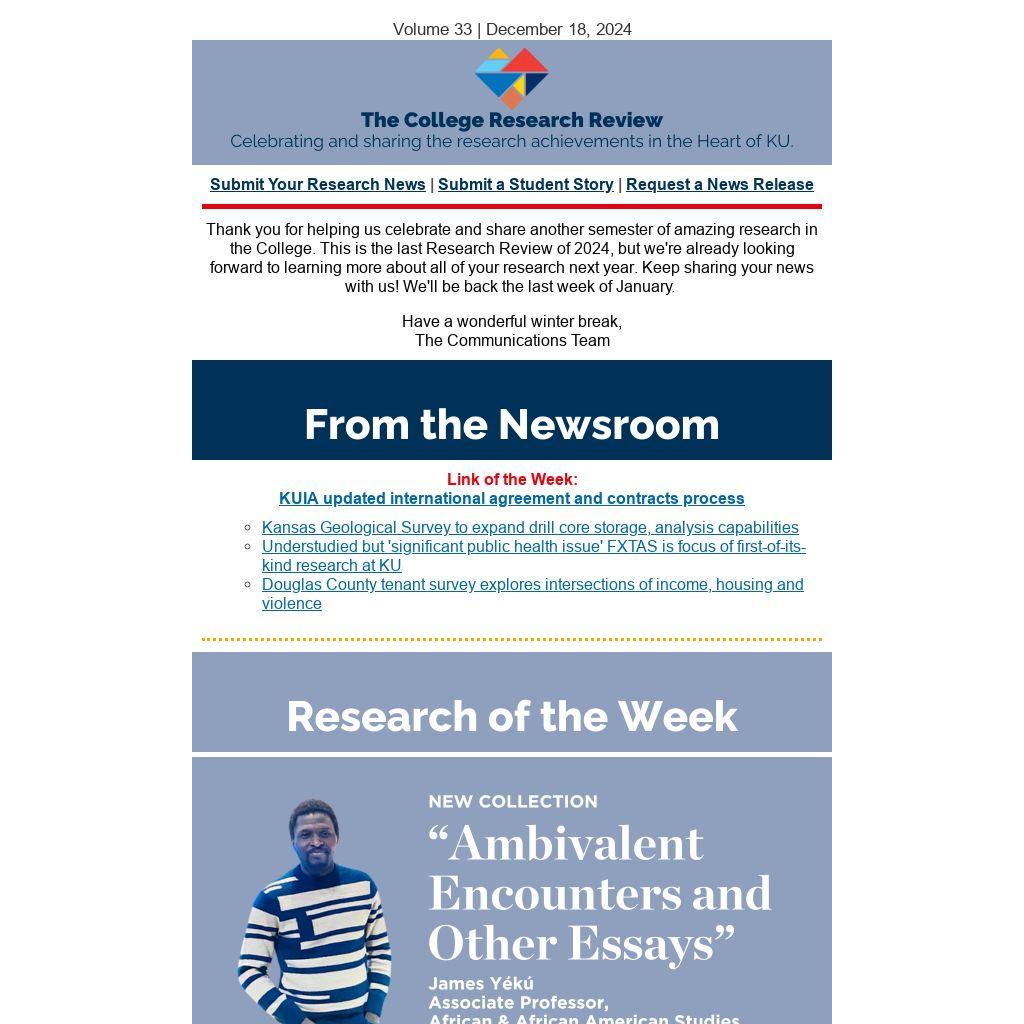 Thank you for helping us celebrate and share another semester of amazing research in the College. This is the last Research Review of 2024, but we're already looking forward to learning more about all of your research next year. Keep sharing your news with us! We'll be back the last week of January.