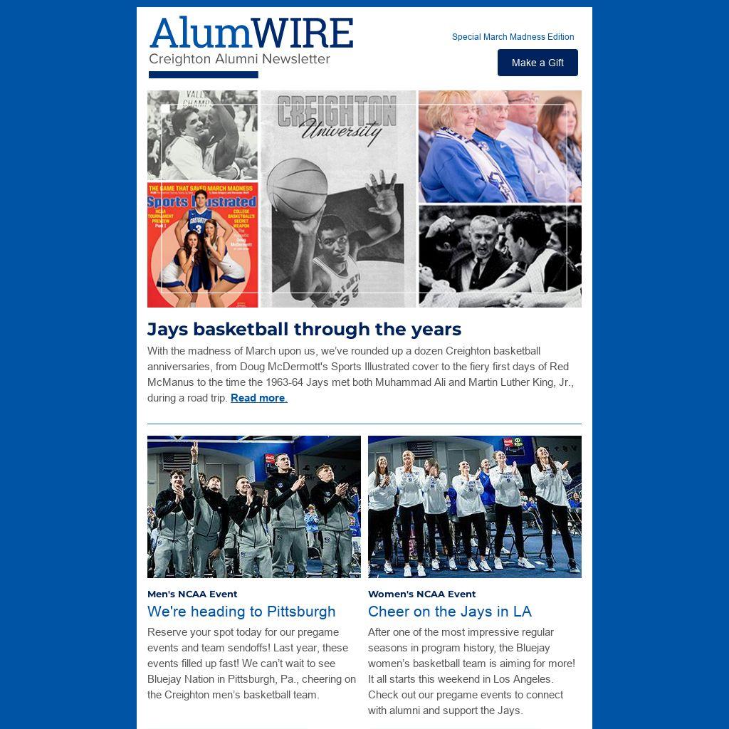 We asked Creighton alumni to share their favorite Bluejay basketball moments earlier this year. Get nostalgic with us and check out all the classic games, iconic shots and personal stories that made the list! Read more.