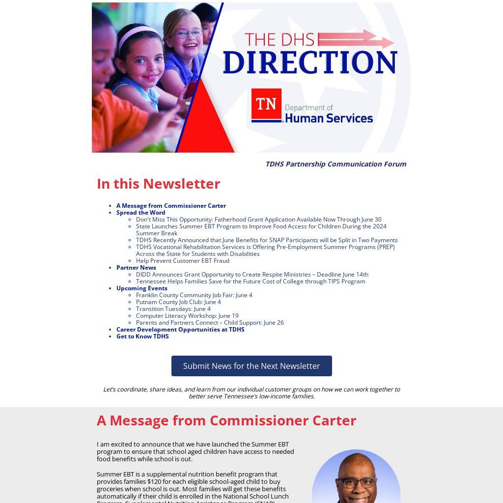For the latest news from the Tennessee Department of Human Services,