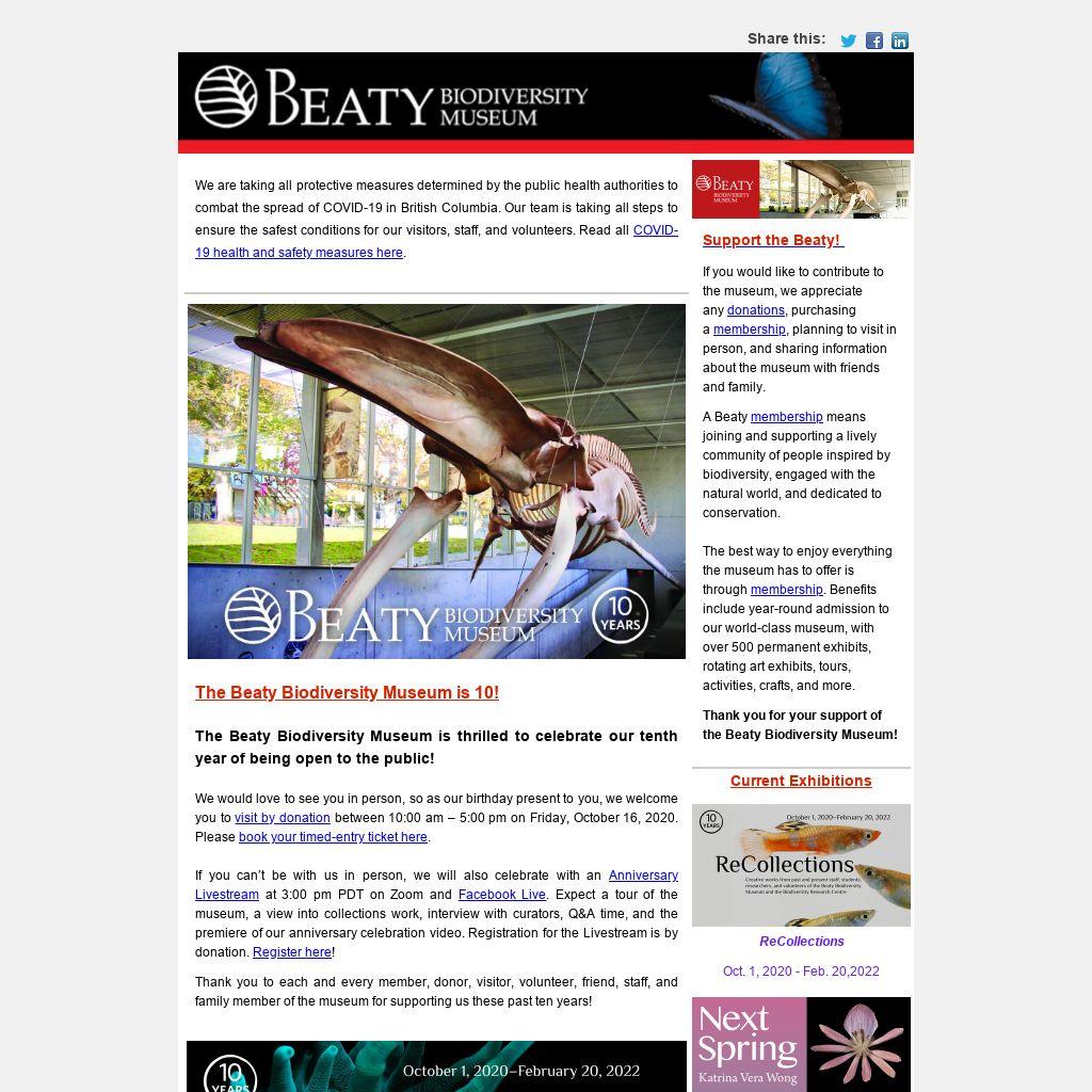 | The Beaty Biodiversity Museum is 10! The Beaty Biodiversity Museum is thrilled to celebrate our tenth year of being open to the public!