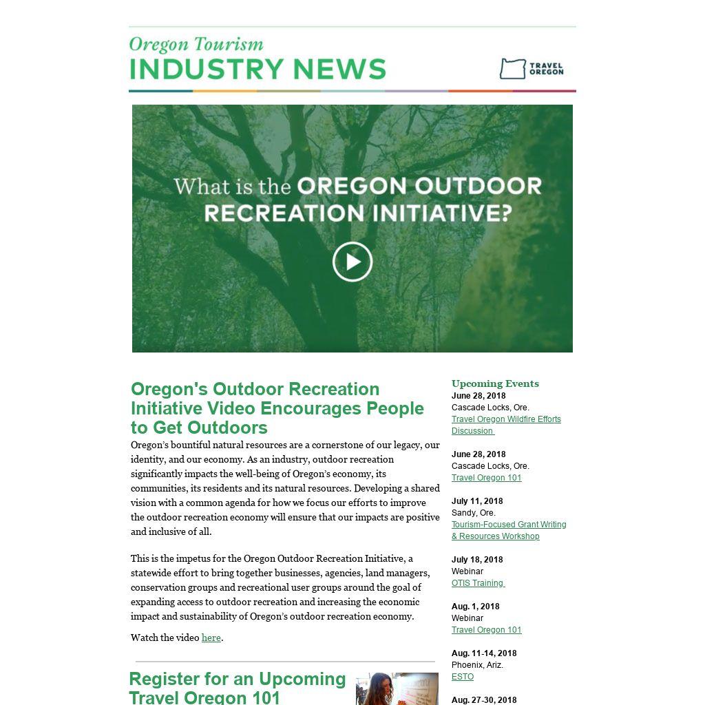 Oregon's Outdoor Recreation Initiative Video Encourages People to Get OutdoorsOregon’s bountiful natural resources are a cornerstone of our legacy, our identity, and our economy. As an industry, outdoor recreation significantly impacts the well-being of Oregon’s economy, its communities, its residents and its natural resources. Developing a shared vision with a common agenda for how we focus our efforts to improve the outdoor recreation economy will ensure that our impacts are positive and inclusive of all.