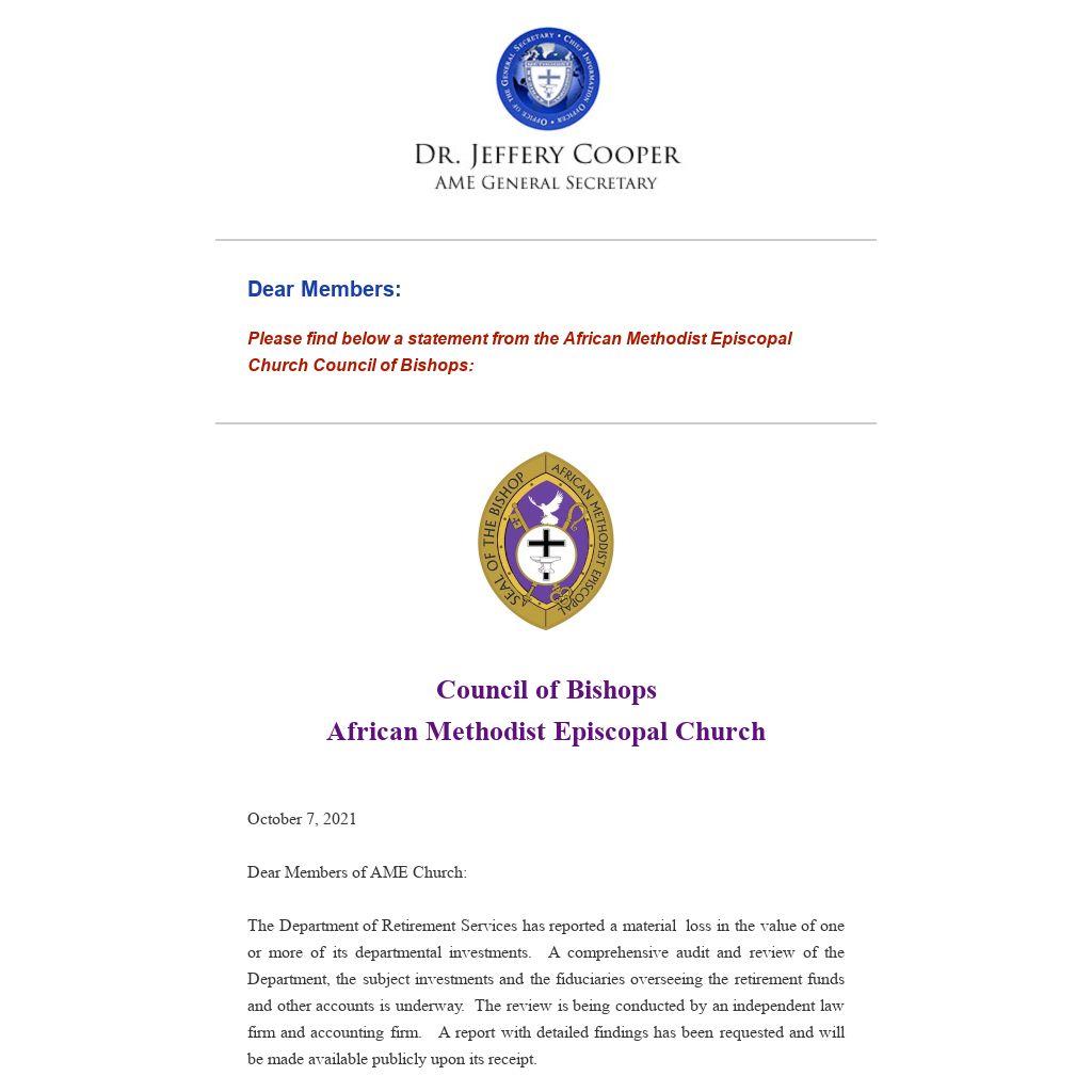 The independent report will indicate whether the subject investment had any impact to retirement funds. The Department has advised that all life insurance coverage provided to participants has not been affected by the value of the departmental investments, which are outside the life insurance program. As a result, life insurance beneficiaries will receive the full value of any valid policy claim. Pending the receipt of the report and findings the Department will hold all new deposits in a standard checking “sweep account” only.
