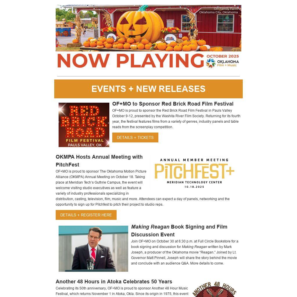 OKMPA Hosts Annual Meeting with PitchFest OF+MO is proud to sponsor The Oklahoma Motion Picture Alliance (OKMPA) Annual Meeting on October 18. Taking place at Meridian Tech’s Guthrie Campus, the event will welcome visiting studio executives as well as feature a variety of industry professionals specializing in distribution, casting, television, film, music and more. Attendees can expect a day of panels, networking and the opportunity to sign up for Pitchfest to pitch their project to studio reps.