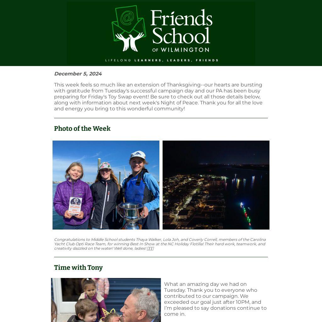 Congratulations to Middle School students Thaya Walker, Lola Joh, and Coverly Correll, members of the Carolina Yacht Club Opti Race Team, for winning Best In Show at the NC Holiday Flotilla! Their hard work, teamwork, and creativity dazzled on the water! Well done, ladies! 🎉⛵✨