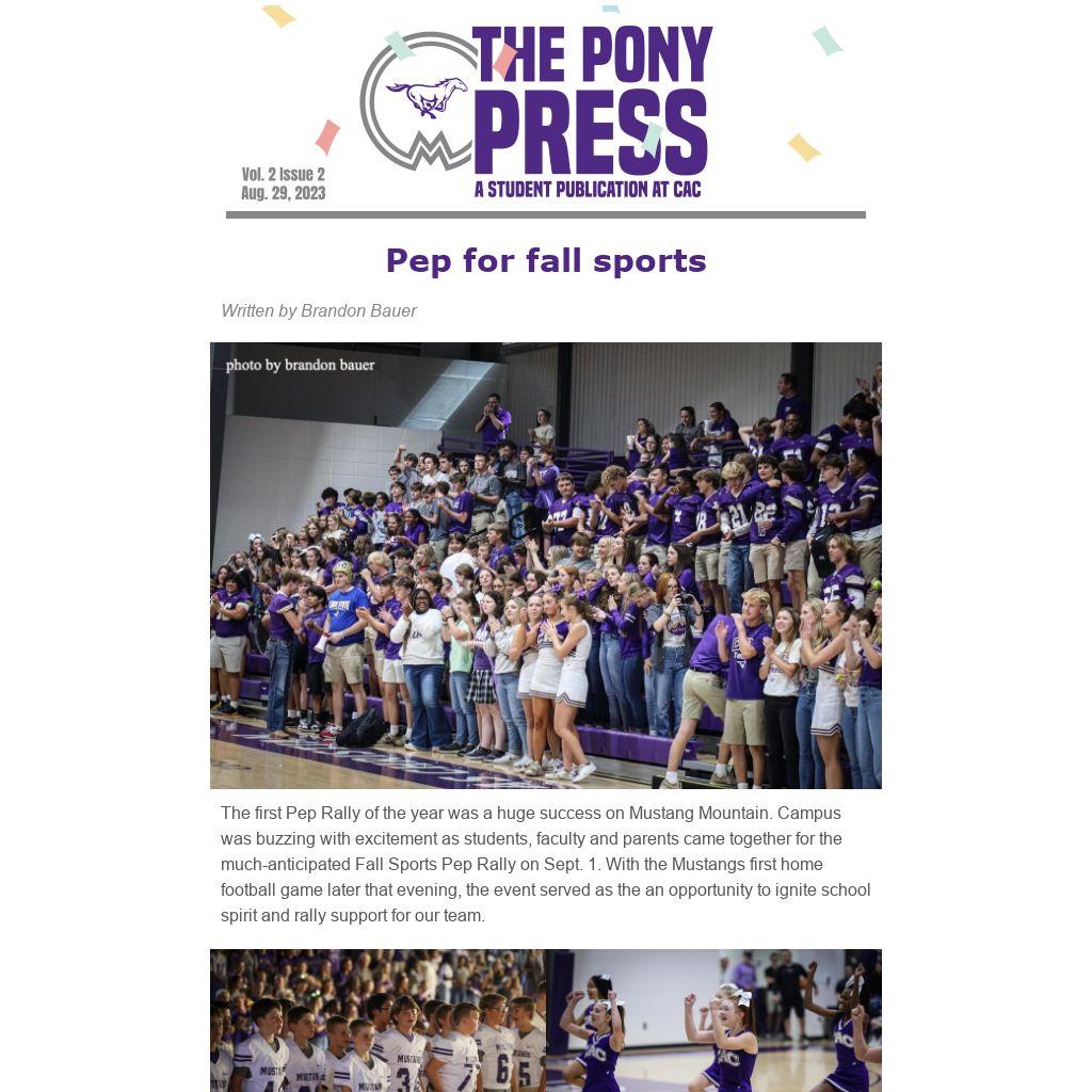 The first Pep Rally of the year was a huge success on Mustang Mountain. Campus was buzzing with excitement as students, faculty and parents came together for the much-anticipated Fall Sports Pep Rally on Sept. 1. With the Mustangs first home football game later that evening, the event served as the an opportunity to ignite school spirit and rally support for our team.