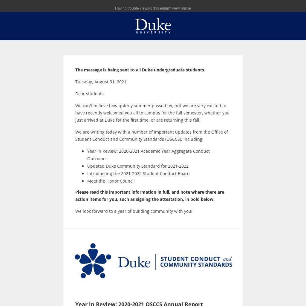 - Updated Duke Community Standard for 2021-2022