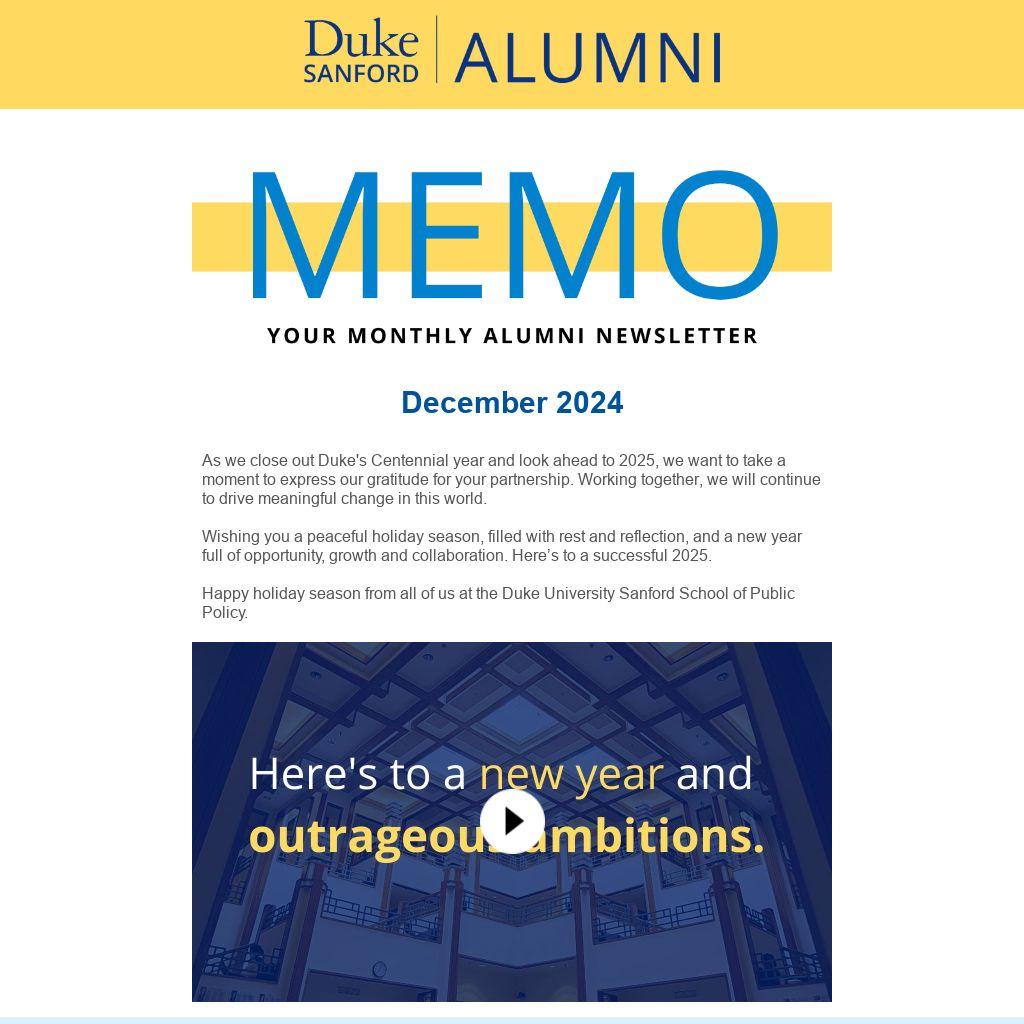 As we close out Duke's Centennial year and look ahead to 2025, we want to take a moment to express our gratitude for your partnership. Working together, we will continue to drive meaningful change in this world.