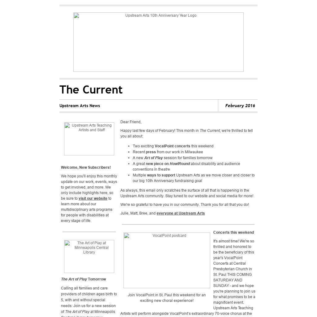 - Multiple ways to support Upstream Arts as we move closer and closer to our big 10th Anniversary fundraising goal