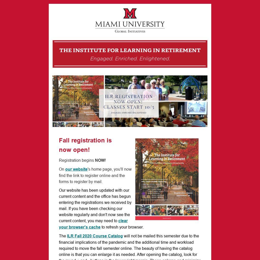 While virtual, we have two easy ways to register--online or by mail. Online is your quickest option and immediately reserves your seat in a class. Online registration–accessed from the ILR website–takes only minutes and requires no passwords. Once you experience the ease of registering online, you'll understand the appeal. It's the most efficient means of registering, both for you and the ILR office. If registering by mail, if you're unable to print the registration form, simply send us your registration information, courses, and payment.