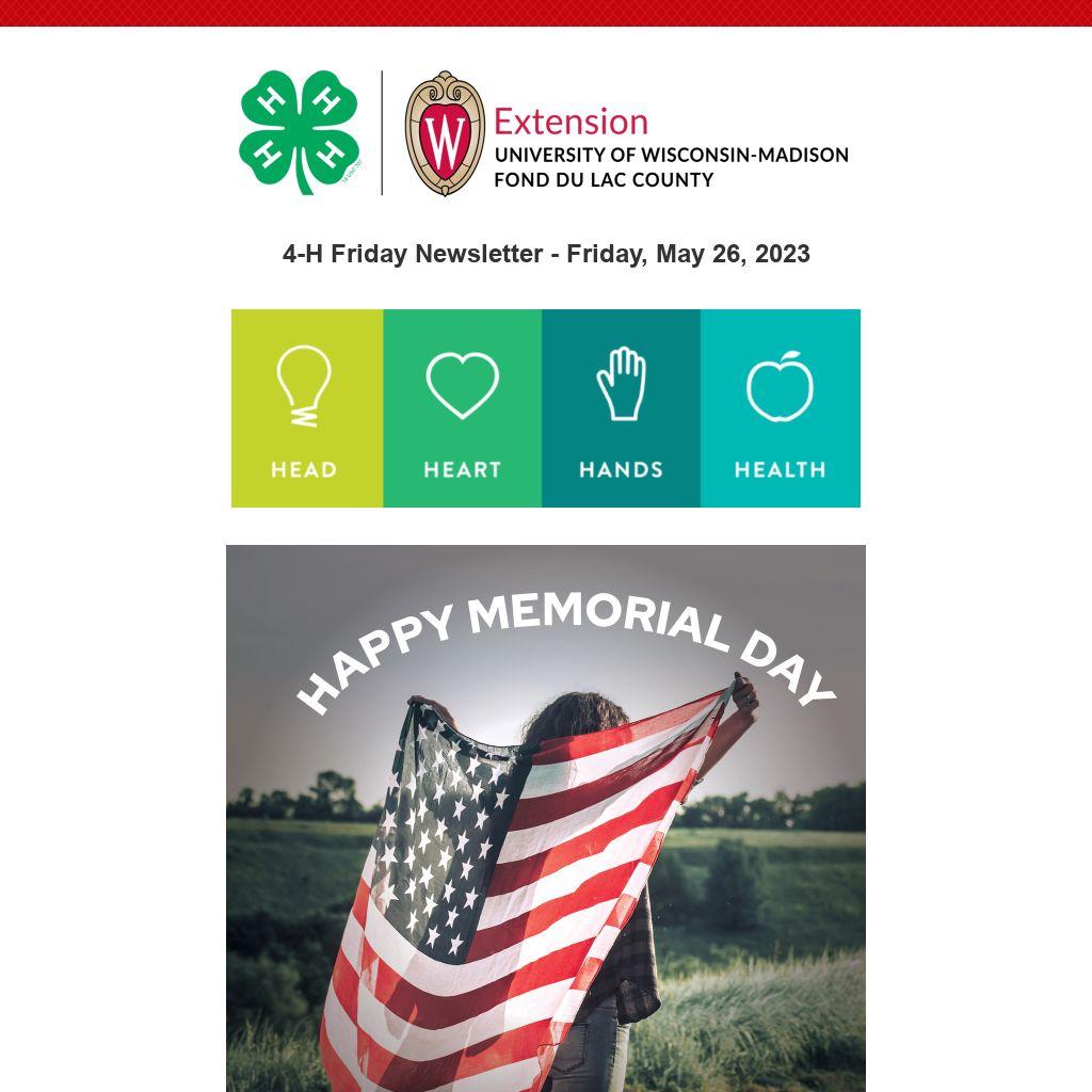 4-H GraduationIf you are eligible to graduate from 4-H (grade 12 and 13 members), please complete this graduation survey before Friday, June 23 indicating whether you will be graduating or staying with the 4-H program one additional year. Here is the link: https://forms.gle/qJf5nqvmhLmN1Ssh8. If you have any questions, please contact Tracy Keifenheim at tracy.keifenheim@wisc.edu.