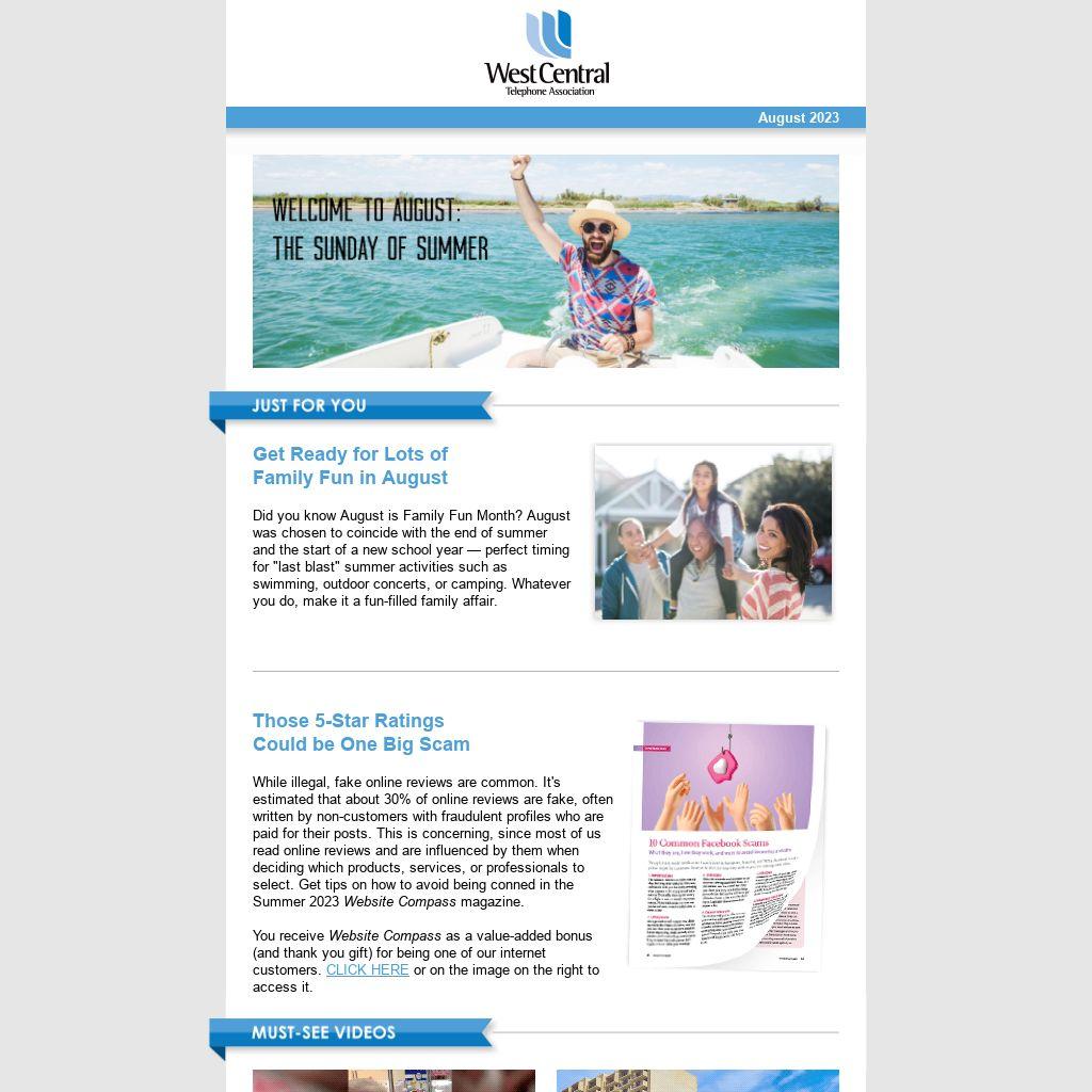 Get Ready for Lots of Family Fun in August Did you know August is Family Fun Month? August was chosen to coincide with the end of summer and the start of a new school year — perfect timing for "last blast" summer activities such as swimming, outdoor concerts, or camping. Whatever you do, make it a fun-filled family affair. ![]()