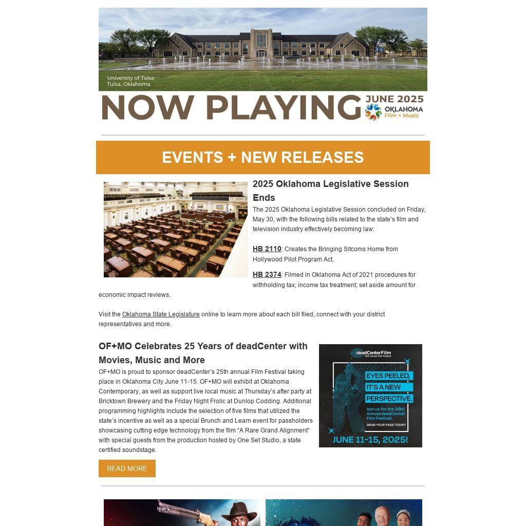 2025 Oklahoma Legislative Session Ends The 2025 Oklahoma Legislative Session concluded on Friday, May 30, with the following bills related to the state’s film and television industry effectively becoming law: