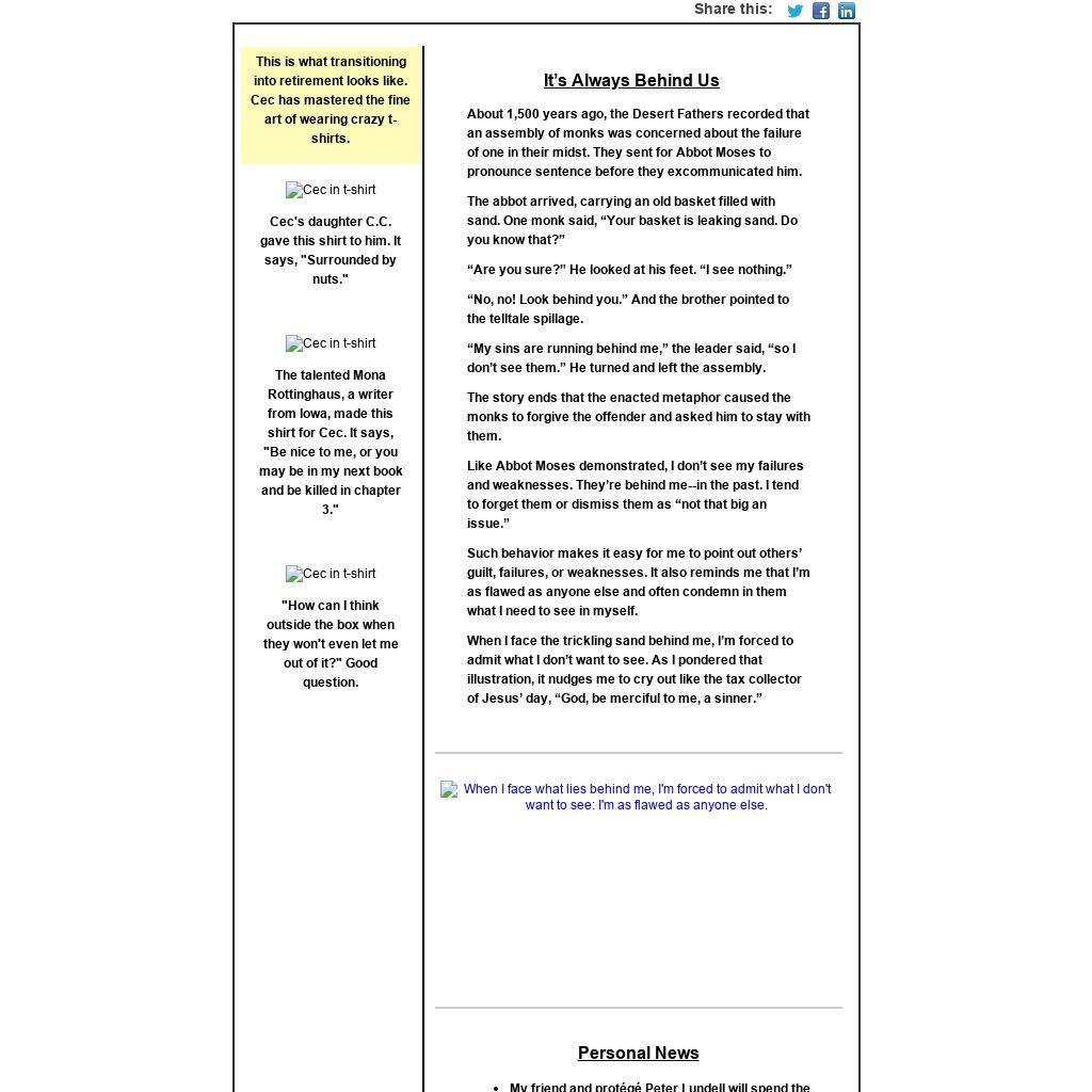 Like Abbot Moses demonstrated, I don’t see my failures and weaknesses. They’re behind me--in the past. I tend to forget them or dismiss them as “not that big an issue.”