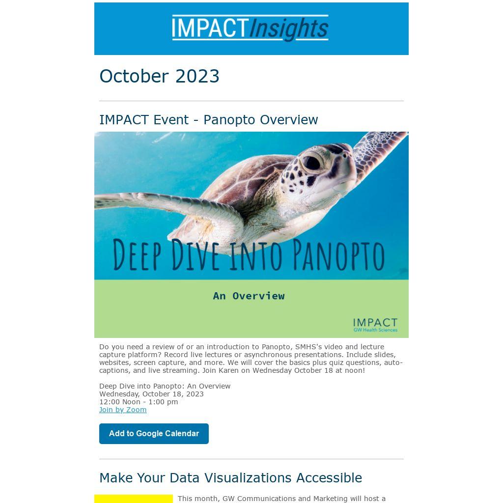 Do you need a review of or an introduction to Panopto, SMHS's video and lecture capture platform? Record live lectures or asynchronous presentations. Include slides, websites, screen capture, and more. We will cover the basics plus quiz questions, auto-captions, and live streaming. Join Karen on Wednesday October 18 at noon!