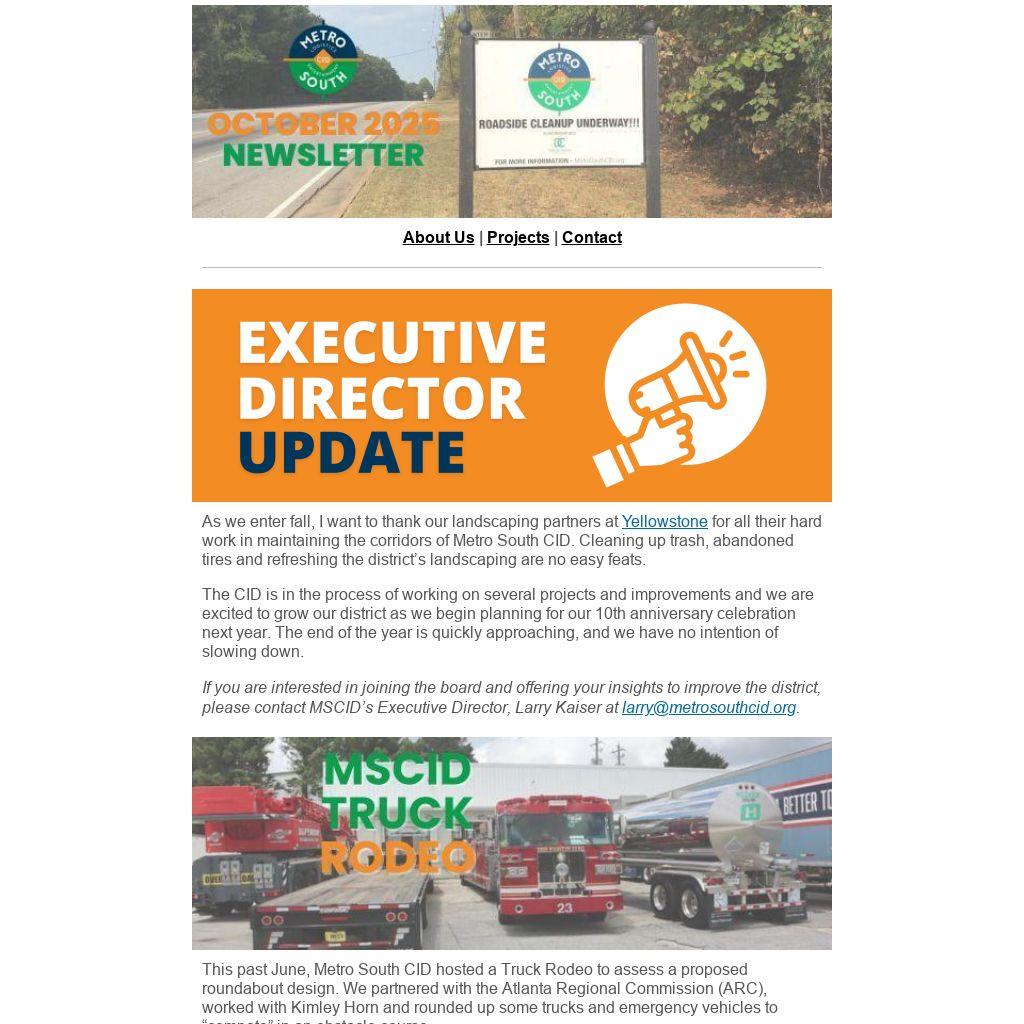 As we enter fall, I want to thank our landscaping partners at Yellowstone for all their hard work in maintaining the corridors of Metro South CID. Cleaning up trash, abandoned tires and refreshing the district’s landscaping are no easy feats.