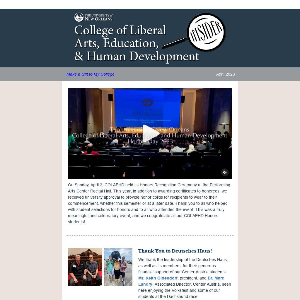 This week, U.S. News & World Report officially released its rankings of selected academic programs. These rankings are based on peer assessments made by a survey of faculty at institutions around the nation with similar programs. The impressive national rankings of four important COLAEHD programs clearly show the high regard for UNO's programs, faculty and students by our peer institutions