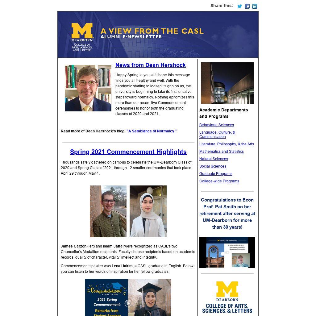 Commencement speaker was Lena Hakim, a CASL graduate in English. Below you can listen to her words of inspiration for her fellow graduates.