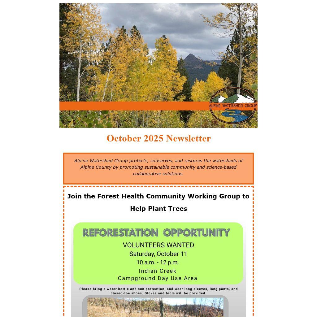Alpine Watershed Group protects, conserves, and restores the watersheds of Alpine County by promoting sustainable community and science-based collaborative solutions.