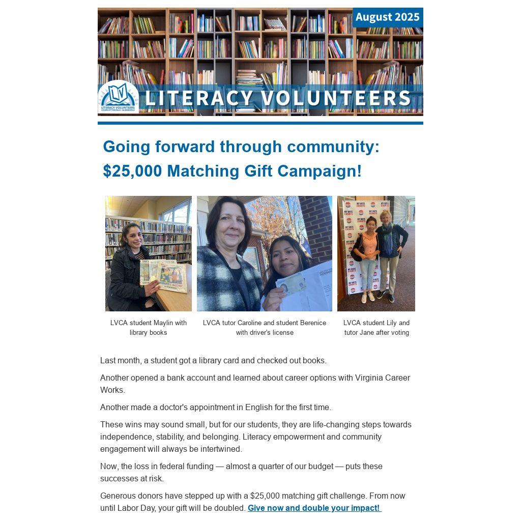 Since 1983, Charlottesville has sustained LVCA. For 41 years, we have seen the transformative power that comes when literacy unlocks potential. For 41 years, the Charlottesville community has supported us as we fulfil our mission. Please continue to help our students receive these vital services.