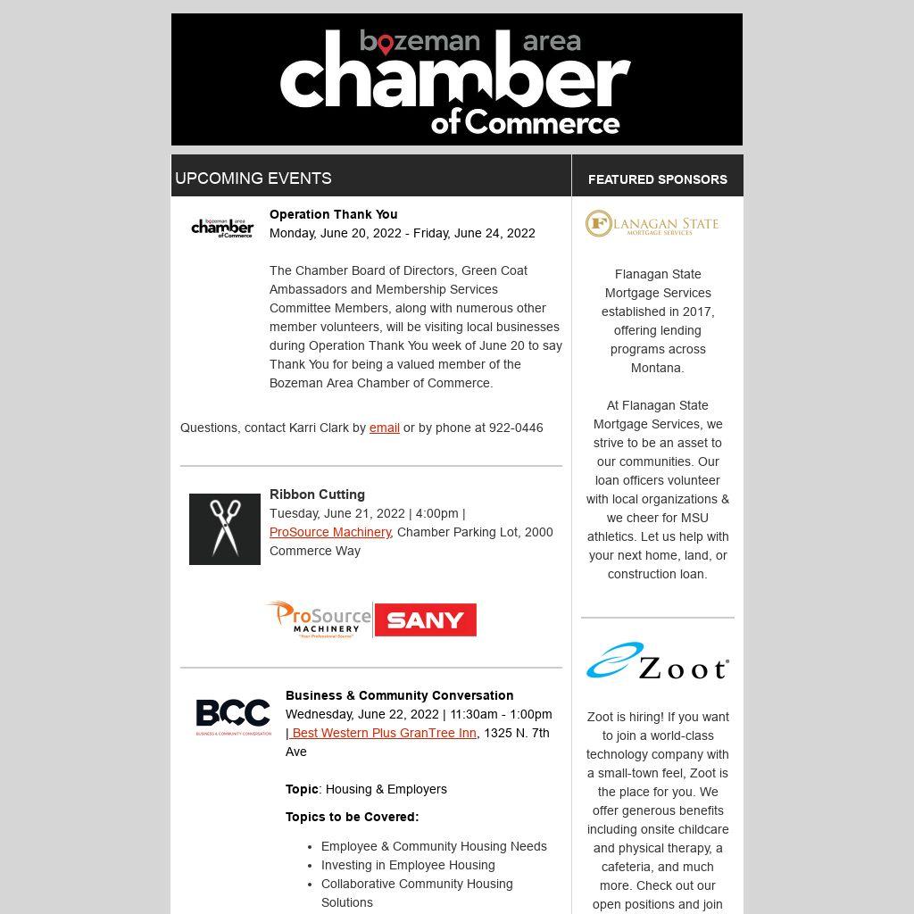 The Chamber Board of Directors, Green Coat Ambassadors and Membership Services Committee Members, along with numerous other member volunteers, will be visiting local businesses during Operation Thank You week of June 20 to say Thank You for being a valued member of the Bozeman Area Chamber of Commerce.