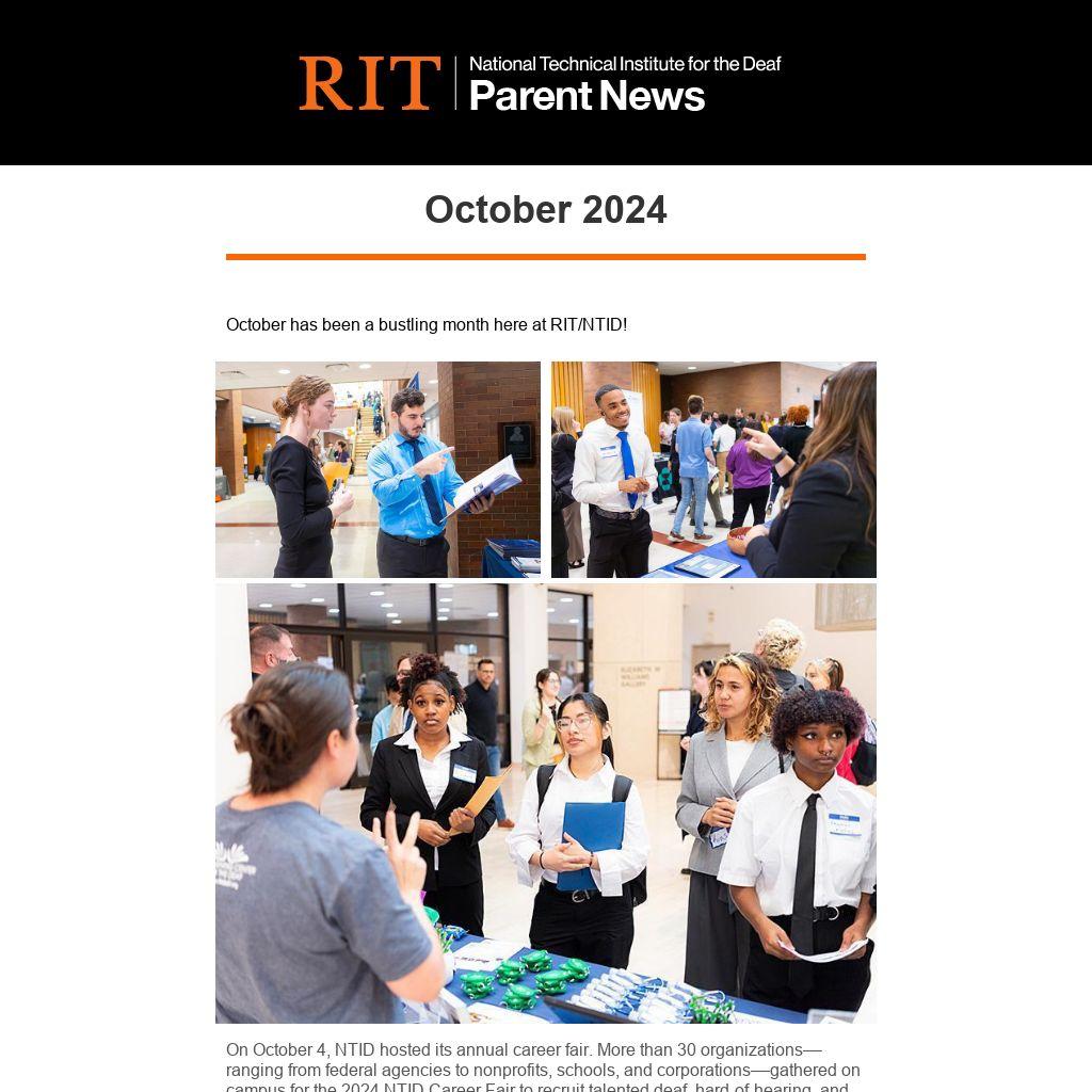 We celebrated Brick City Homecoming Weekend October 17-19. The campus was bustling with parents, families, alumni, students, and faculty enjoying a weekend full of events. Our annual NTID Parent Welcome Breakfast had stellar attendance this year, with many RIT/NTID parents and family members joining us! The gathering provided a warm atmosphere for families to connect, share experiences, and engage with NTID faculty and staff. We hope everyone who attended enjoyed meeting new people, learning new things, and gaining insights into our campus community.