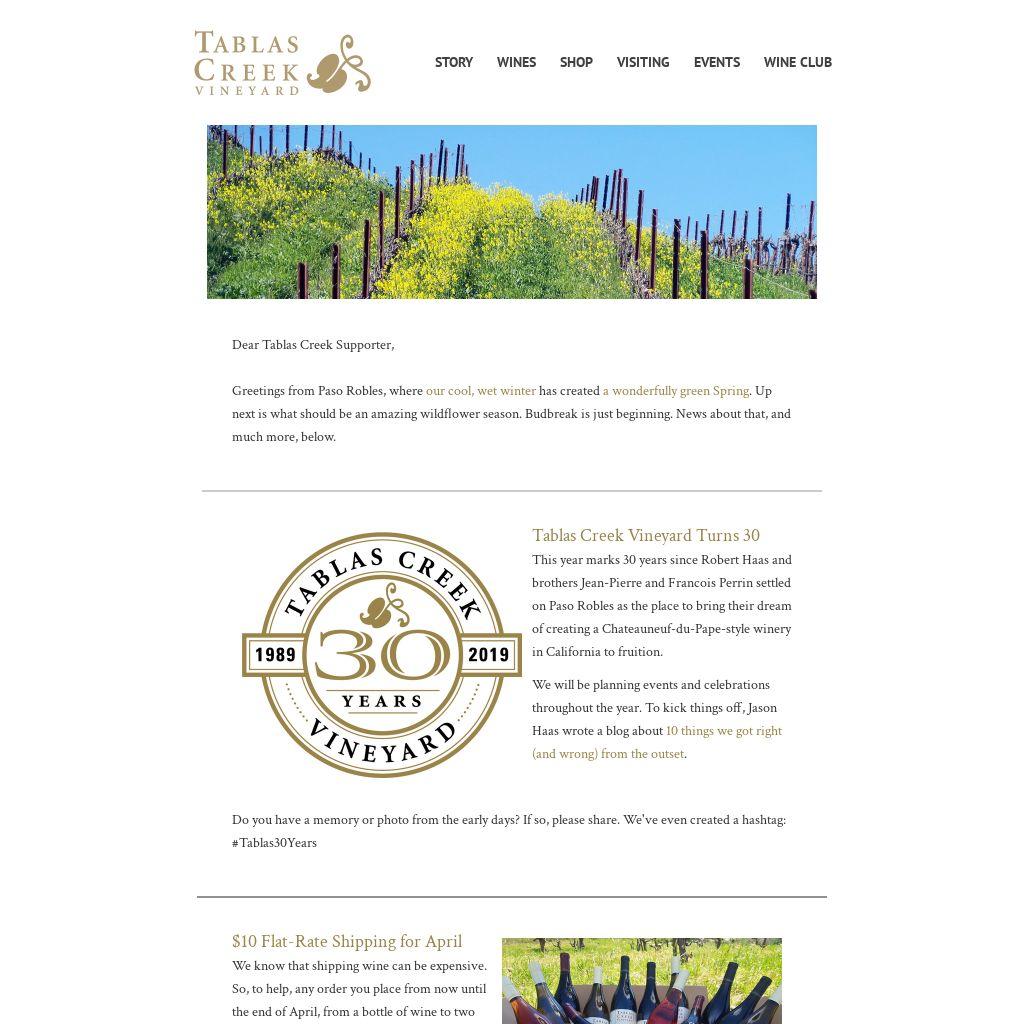 Ian PS We also have a busy schedule of festivals, dinners, and tastings that we'll be hosting in places like Miami, Boston, Nashville, Portland, San Diego, and Santa Fe. You can stay up to date on all our events at tablascreek.com/events
