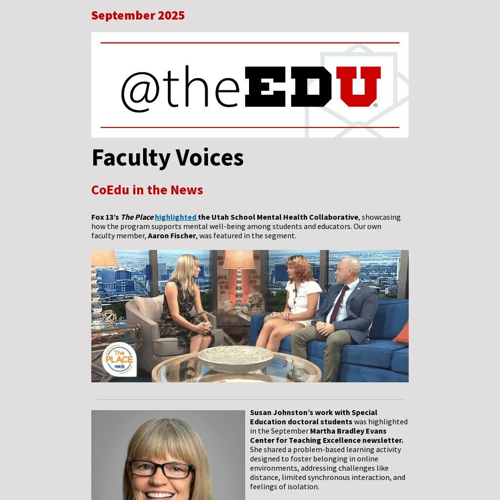 Fox 13’s The Place highlighted the Utah School Mental Health Collaborative, showcasing how the program supports mental well-being among students and educators. Our own faculty member, Aaron Fischer, was featured in the segment.