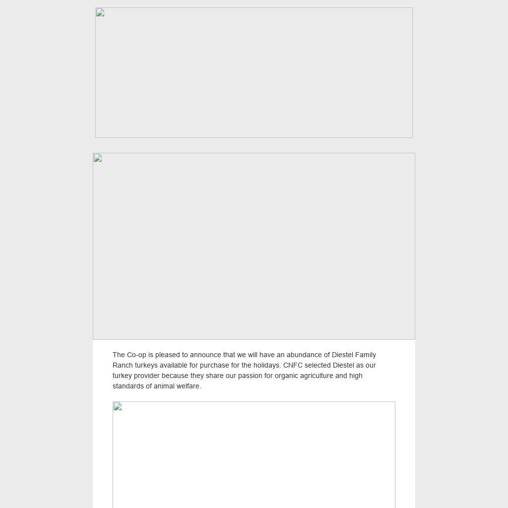 The Co-op is pleased to announce that we will have an abundance of Diestel Family Ranch turkeys available for purchase for the holidays. CNFC selected Diestel as our turkey provider because they share our passion for organic agriculture and high standards of animal welfare.