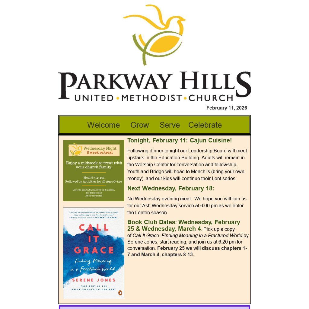 No Wednesday evening meal. We hope you will join us for our Ash Wednesday service at 6:00 pm as we enter the Lenten season.